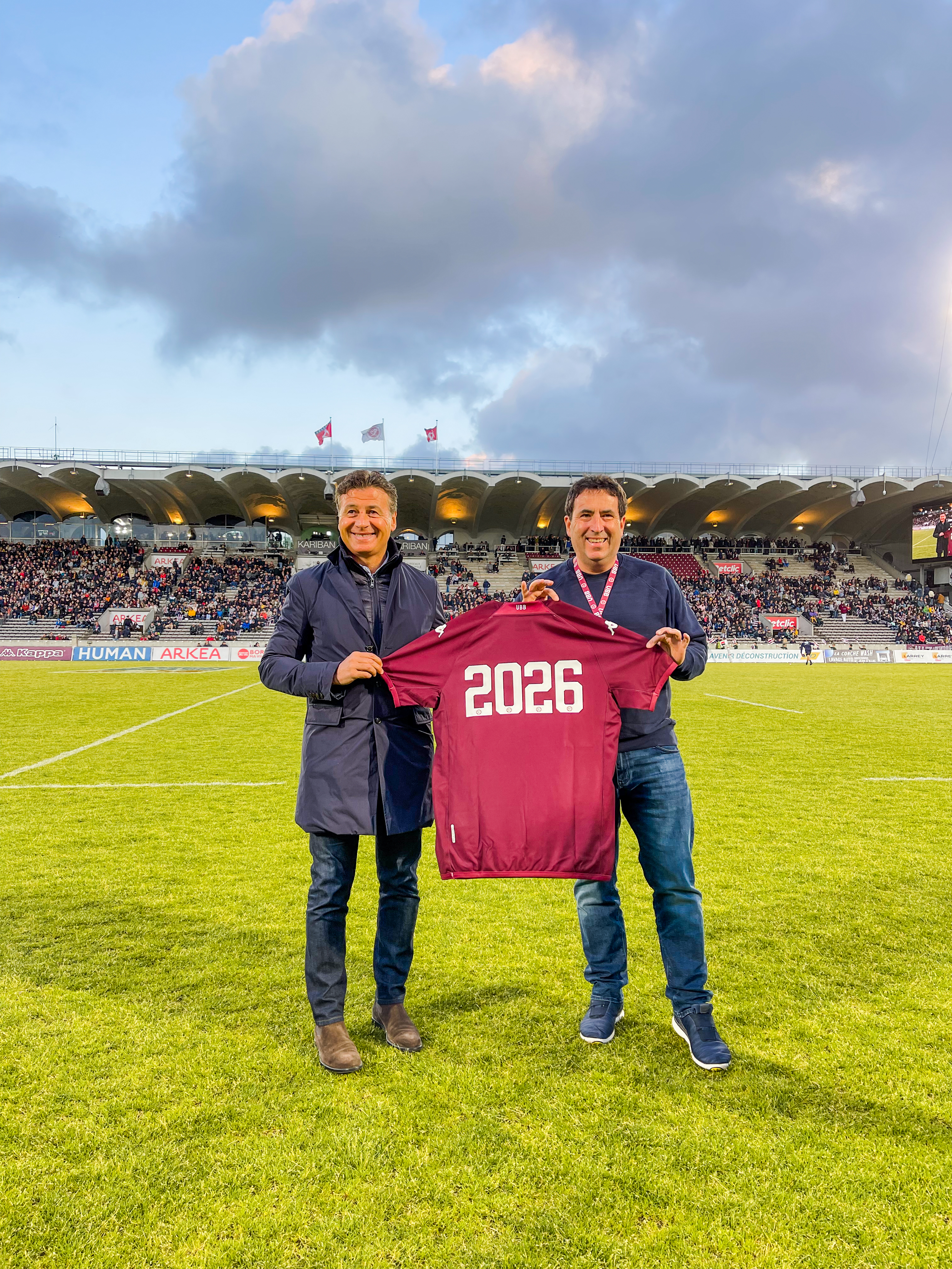 Nicolas Béraud, directeur général et cofondateur de Betclic, et Laurent Marti ont annoncé le renouvellement du partenariat juste avant la rencontre face à Lyon ce dimanche soir à Chaban.