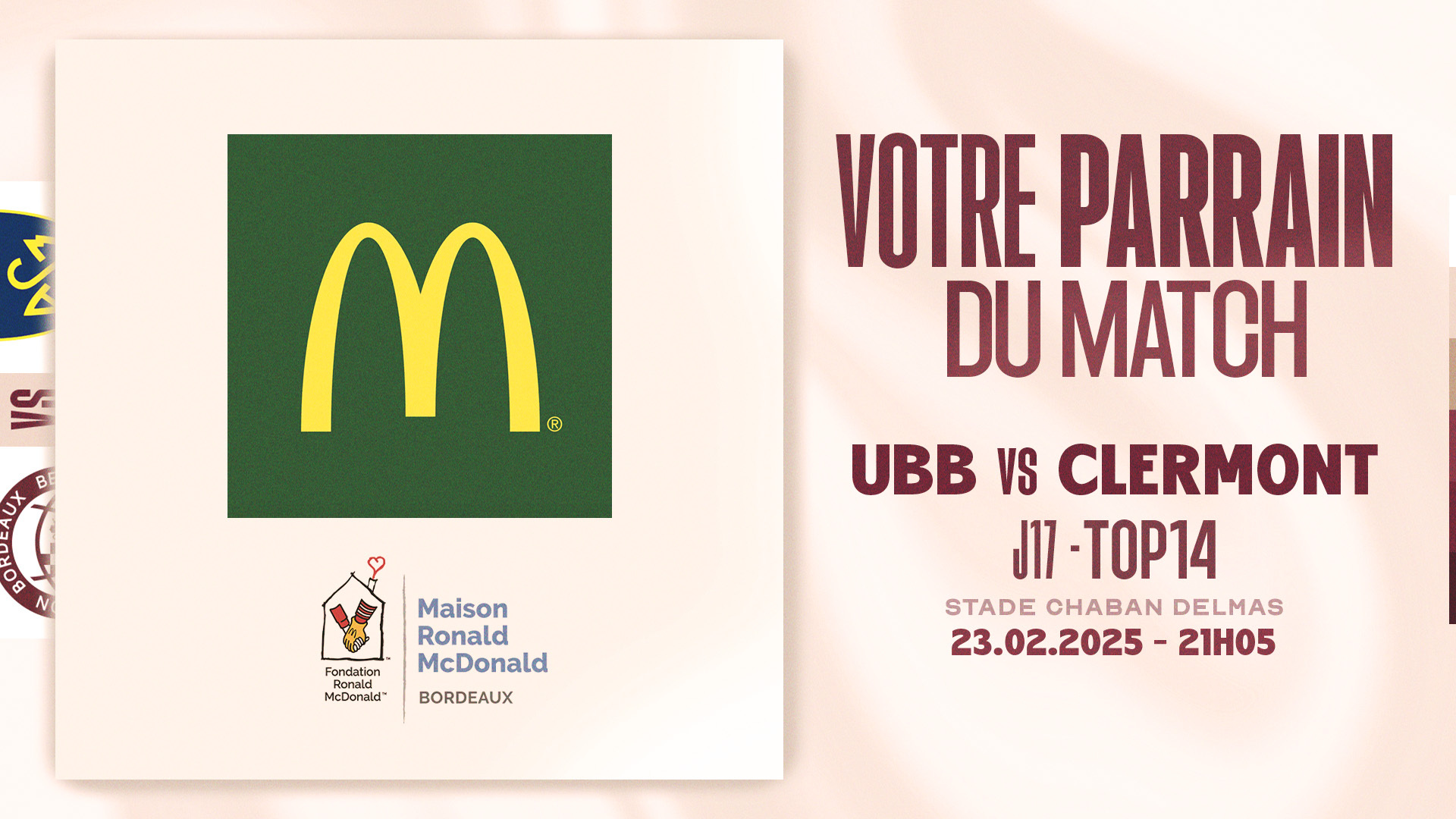 Mc Donald's sera le parrain du match UBB / Clermont ce dimanche à Chaban, à travers la fondation Ronald Mc Donald et sa Maison de Bordeaux.