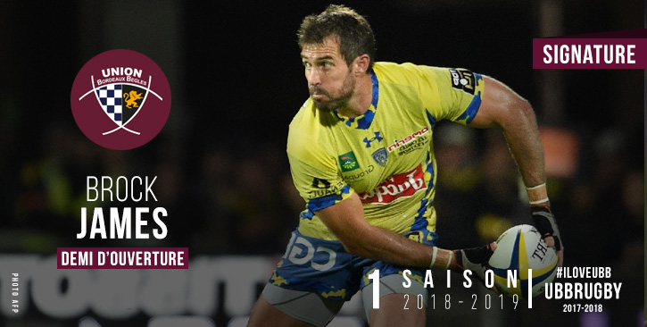 On ne présente plus le demi d'ouverture franco-australien qui comptabilise aujourd'hui plus de 2 500 points en matchs professionnels. Après dix saisons passées à l'ASM Clermont Auvergne et deux saisons au Stade Rochelais, Brock James rejoindra l'UBB la saison prochaine.